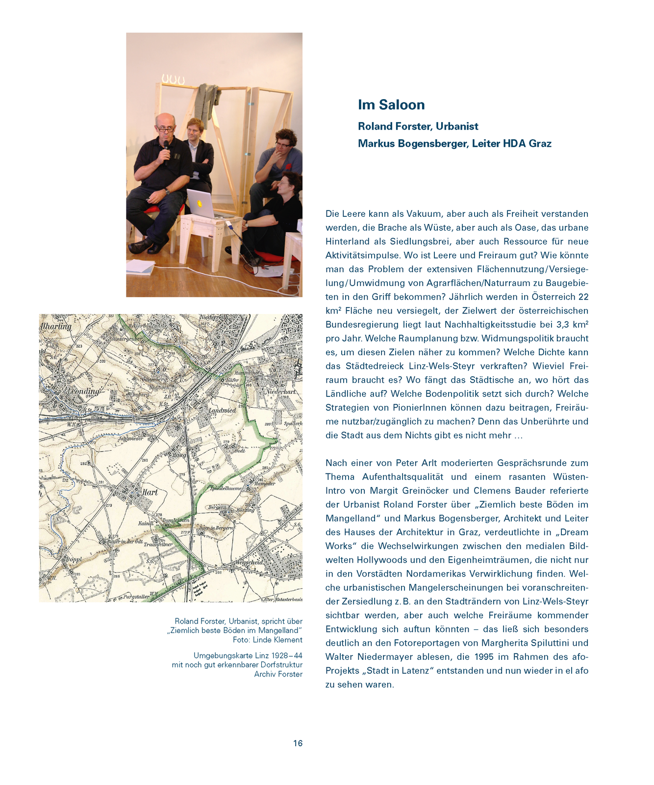 Die Autoren von Stadt in Latenz waren anhand des Dreiecks Linz-Wels-Steyr und seiner semi-urbanen Umgebungen damals von der Frage ausgegangen, ob das Land (das ehemals Ländliche) eine Stadt im Werden sei. Die vorgeschlagenen urbanistischen Lesarten hatten zwei Jahrzehnte später nichts an Aktualität eingebüßt und zeigten, dass es zu jeder Zeit möglich ist, sich mit einem kritisch-offenen Blick den (jeweils neu zu interpretierenden) Gegebenheiten anzunehmen. Der „Urbanisierung in zweiter Lesung“ wollten wir nun eine weitere Lektüre hinzufügen: Wem gehört die Stadt, das Land? Wer plant die Planung? Wie werden territoriale Ansprüche (symbolisch und ökonomisch) erhoben und geregelt? Welche Kräfte formen den Raum, der schließlich allen gehört? Ist es heute noch möglich, das diffizile Gefüge Stadt zu entwickeln, das an konzentrierter Stelle vieles – auch sehr Gegensätzliches – miteinander zu verbinden vermag? Wo keimt Neues?