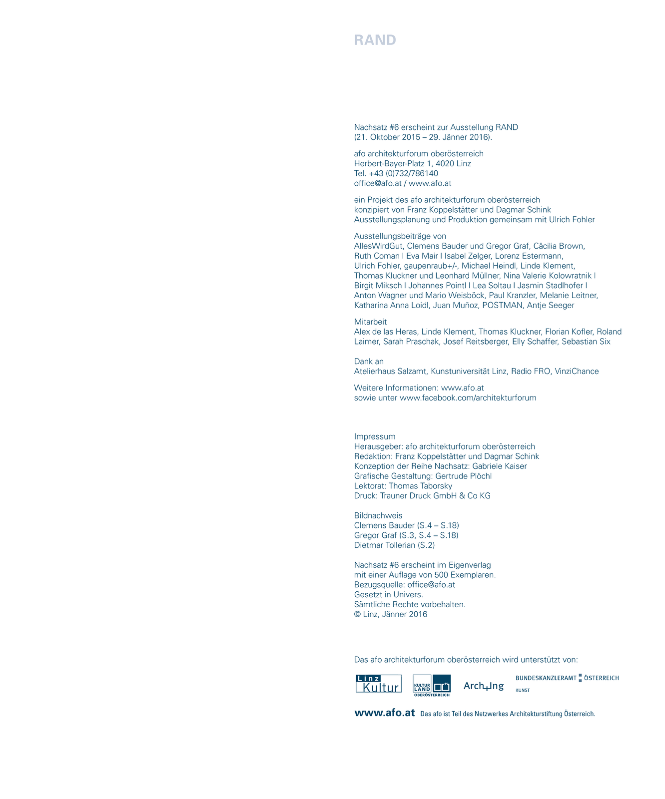 erschienen zur Ausstellung RAND