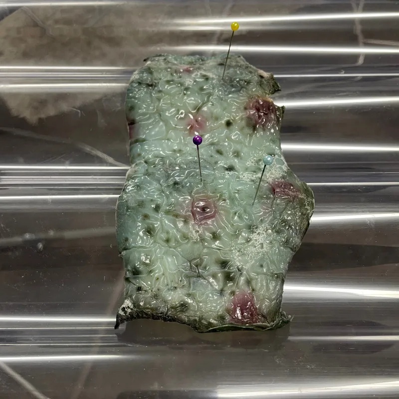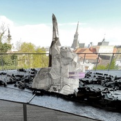 InstallationDas Bronze-Stadtmodell am Schlossberg zeigt Linz um 1800. Tom Bogaert, heuer Gastkünstler des afo, errichtet darüber eine mehrfarbige Installation aus Agar-Agar.