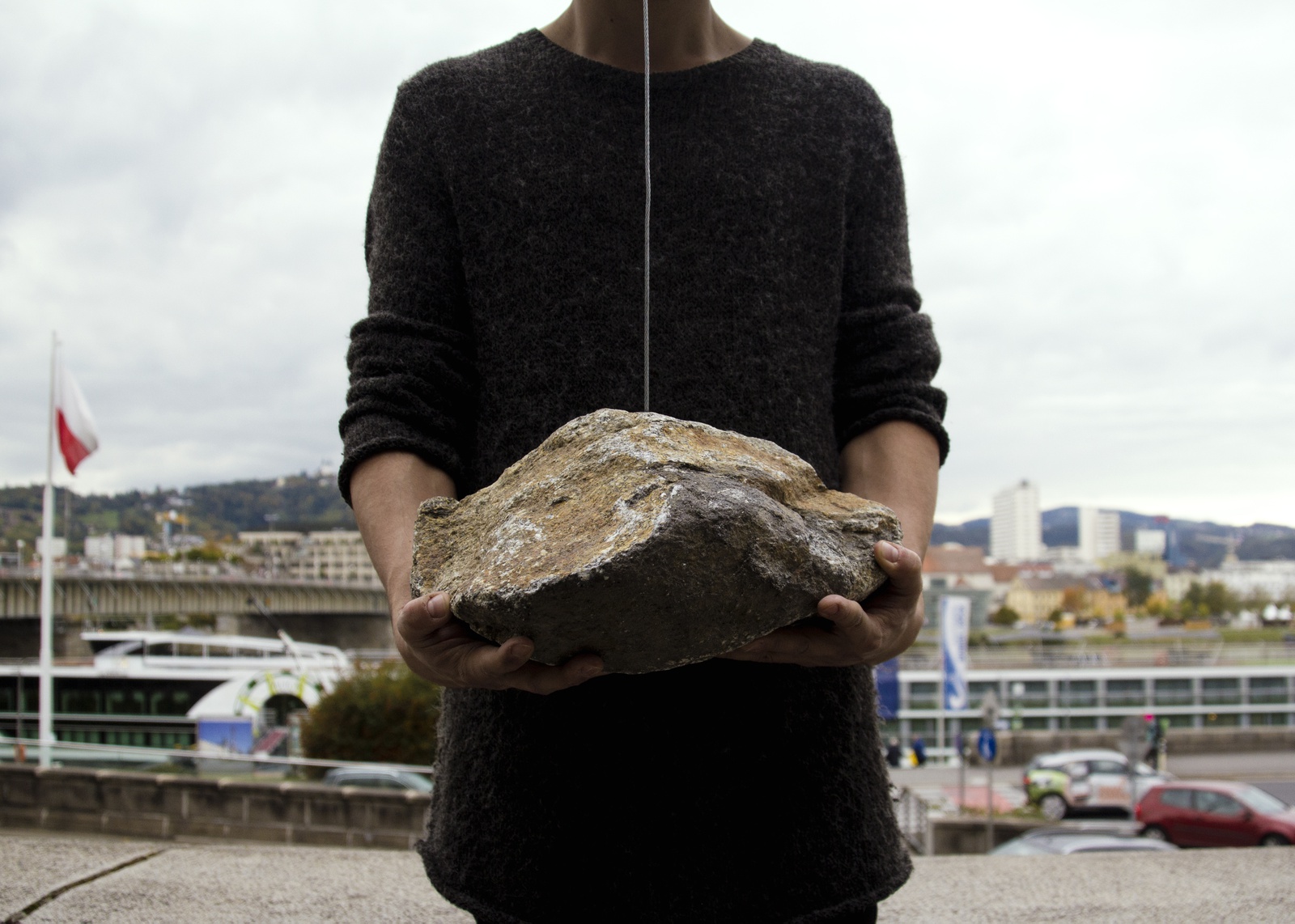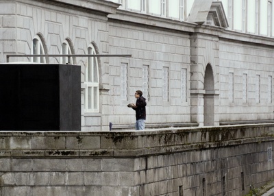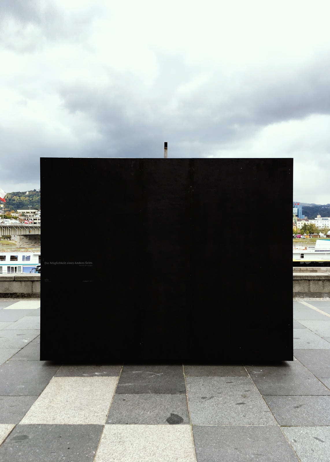 Im antiken Griechenland beschrieb Anaximander von Milet die kreisförmigen Bewegungen der Himmelskörper als riesigen Getriebemechanismus. Die Erde stand in dessen Zentrum, umgeben von einer Reihe sich darum drehender Räder. Durch kleine Löcher auf ihren Oberflächen drang der Schein des Feuers, das jenseits davon lag. Sonne, Mond und jeder einzelne Planet oder Stern, der unsere Nacht belebte, waren daher nichts weiter als Hohlräume, die andeuteten, dass etwas Glitzerndes hinter der Eingrenzung des Himmels existierte. Vor der Donau steht eine Camera obscura. Darin: der Abgrund der Dunkelheit und die fieberhafte Musik des brasilianischen Flusses Tietê. Von außen lüftet jemand die Abdeckung über einem kleinen Loch, das einen schwachen Lichtstrahl eindringen lässt. Mit einem Gewicht wie dem der Geschichte besteht die Lücke darauf, sich zu verdecken, doch dieses Andere widersetzt sich – und bewirkt durch seine Präsenz die sich abzeichnende Landschaft im Inneren. Die Vorstellung, dass der undurchlässige Hintergrund der Dinge keine Begrenzung, sondern ein Schleier zwischen uns und dem Lichtstrahl des Unbekannten ist, verwandelt dieses kleine Loch zur Möglichkeit, sich über das Anders-Sein klar zu werden, das sich hinter jeder Grenze befindet. Über ein Nichtvorhandensein, welches die Kunde von einer Landschaft filtert, die nur durch einen Anderen möglich wird: ein Bild des Unbezwingbaren, eine Gestalt, die nicht im Voraus abzuschätzen ist. Nur indem die vollkommenste Dunkelheit aufgestochen wird, scheint das Hereinbrechen einer Landschaft, die mit Leidenschaft in Verbindung steht, möglich. Dies geschieht jedoch nur so lange, wie diese kleine Wunde offen gehalten wird.