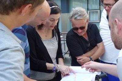 Vizebürgermeister und Mobilitätsreferent Martin Hajart und der Abteilungsleiter Mobilitätsplanung der Stadt Linz Roman Minke waren gemeinsam mit afo-Leiter Franz Koppelstätter mit wechselnden Reisegruppen unterwegs. Um unterschiedliche Perspektiven einzunehmen wurden verschiedene Mobilitätsformen gewählt: Zu Fuß, mit dem Rad und auf größere Distanz mit dem Elektro-Leihauto.
