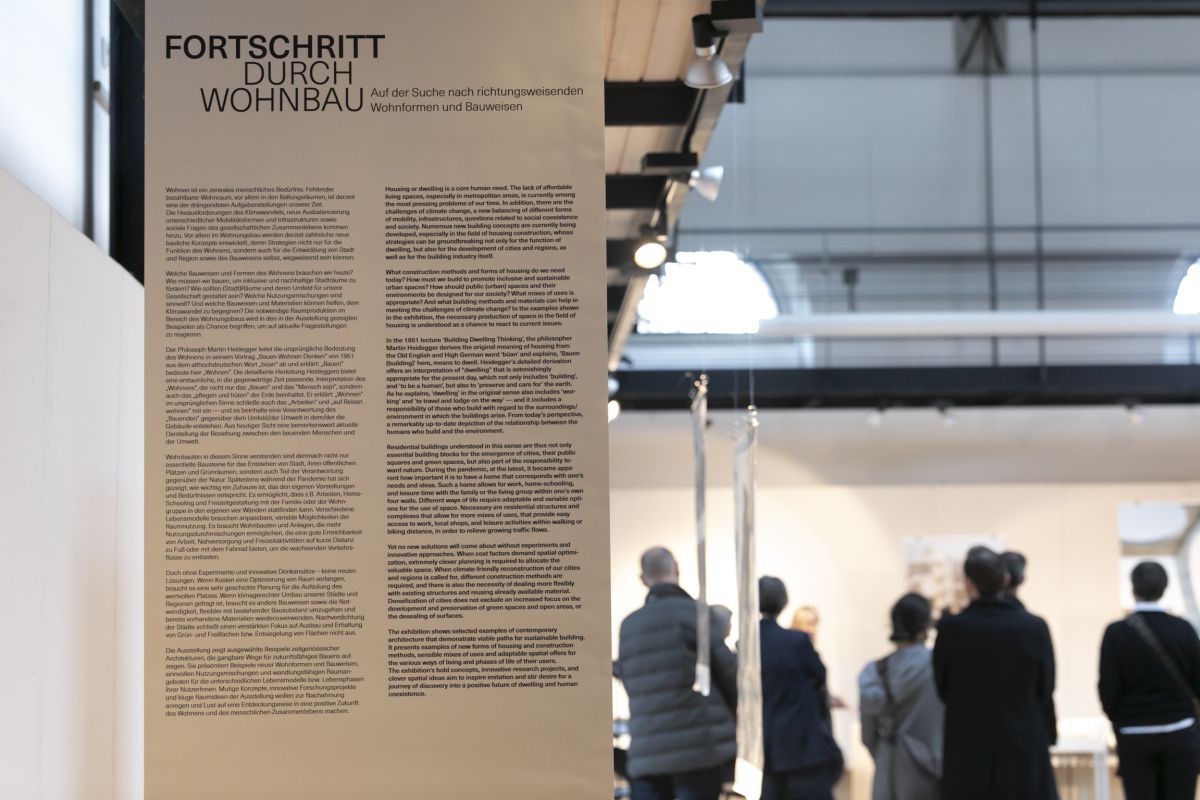 Welche Bauweisen und Formen des Wohnens brauchen wir heute? Wie müssen wir bauen, um inklusive und nachhaltige Stadträume zu fördern? Wie sollten (Stadt)Räume und deren Umfeld für unsere Gesellschaft gestaltet sein? Welche Nutzungsmischungen sind sinnvoll? Und welche Bauweisen und Materialien können helfen, dem Klimawandel zu begegnen? Die notwendige Raumproduktion im Bereich des Wohnungsbaus wird in den in der Ausstellung gezeigten Beispielen als Chance begriffen, um auf aktuelle Fragestellungen zu reagieren.