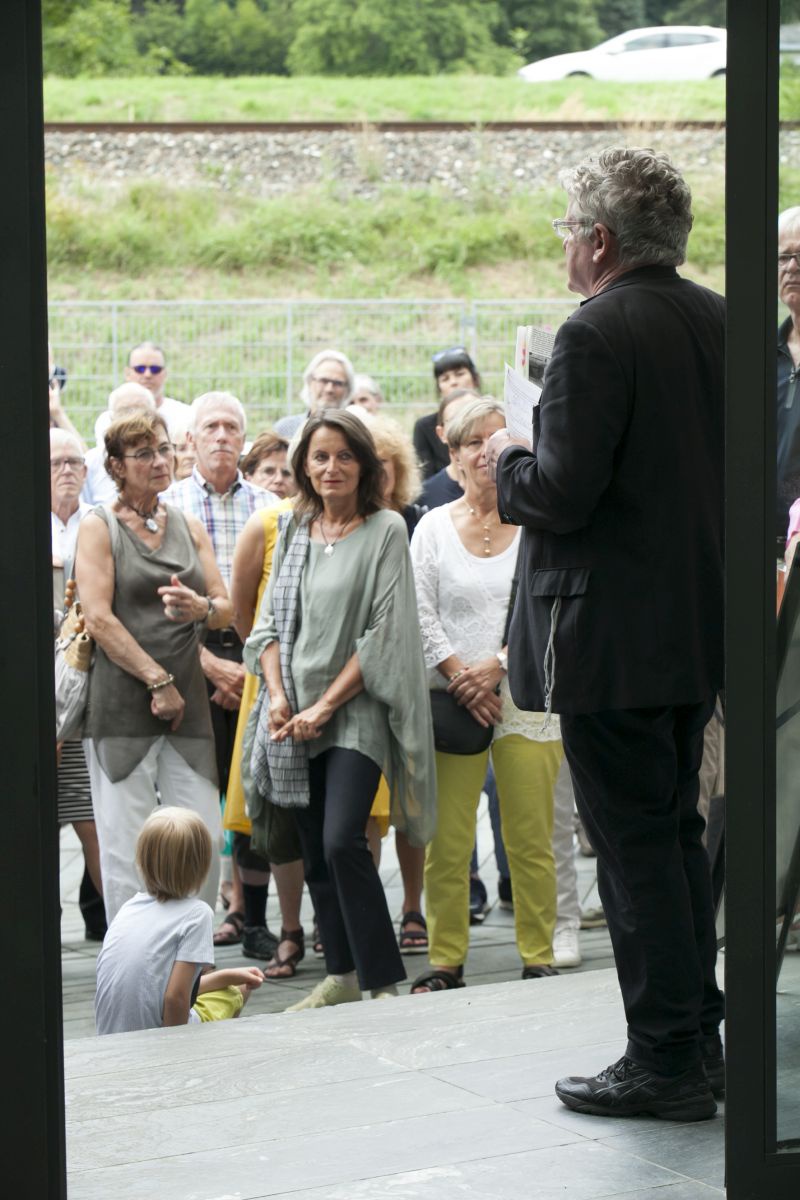 Ausgehend von der Erörterung der akustischen Begebenheiten und Besonderheiten im und um das Steinhaus und von der Befassung mit der Person Günther Domenig und seinem Werk erarbeitete Barbara Kaiser eine ortsbezogene Inszenierung mit einem Stimmensemble. Startpunkte für die Annäherung an diesen Ort bildeten für sie folgende Fragen: Welche Grundtöne lassen sich im und um das Gebäude finden? Wie lassen sich die vorgefundenen architektonischen Begebenheiten in Körperlichkeit und Klang übersetzen? Was wurde hier von Günther Domenig abgearbeitet und hat sich in diese Architekturskulptur eingeschrieben?