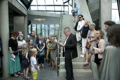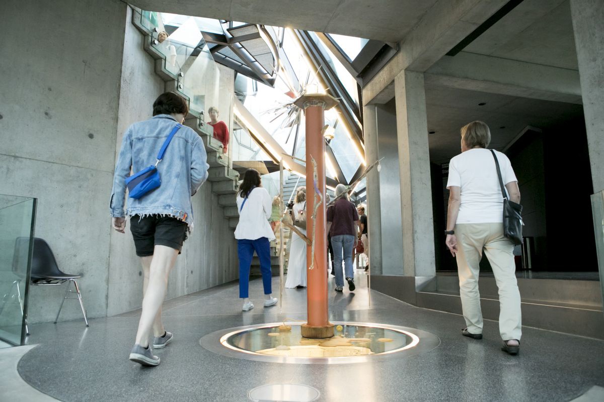 Aldo Giannotti und Karin Pauer bieten eine performative Hausführung an, welche sich auf den 30-jährigen Entstehungsprozess der Gebäude-Skulptur konzentriert. Basierend auf Erzählungen über Herausforderungen, Misserfolge, Hürden und Kämpfe, die mit der Realisierung des Mammutprojektes einhergingen, wird eine Geschichte konstruiert, durch die das Gebäude aus alternativen Perspektiven erlebt werden kann.