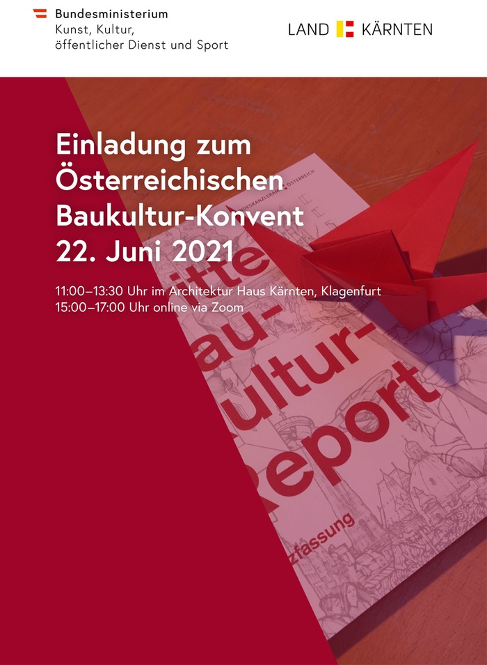Kärnten hat 2021 zum BAUKULTURJAHR ausgerufen. Am 22. Juni 2021 werden in Klagenfurt Staatssekretärin für Kunst und Kultur Andrea Mayer und Landeshauptmann Peter Kaiser sowie Landeshauptmann-Stellvertreterin Gaby Schaunig und Landesrat Daniel Fellner die neuen Baukulturellen Leitlinien des Landes Kärnten zum Anlass nehmen, um eine pilothafte Bund-Länder-Initiative zur Baukultur zu starten, mit der Kärnten vorangeht. Diese Initiative soll drei Elemente umfassen: