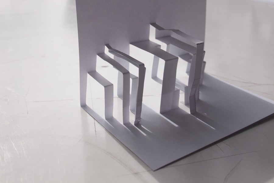 Pop-up architecture oder origamic architecture entwickelte sich aus der japanischen Origami und Kirigami Papierkunst. Aus einem zweidimensionalen Blatt Papier soll durch Schneiden und Falten ein dreidimensionales Modell entstehen, das auch wieder flach zusammengeklappt werden kann.