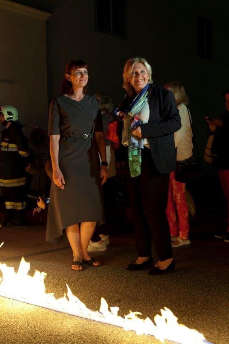 Spuren der Brandlinie sind nach der Eröffnung erhalten geblieben und kontextualisieren zusätzlich die Gegenpole Feuer und Wasser. Die Rückstände der Feuerlinie bilden eine physische Verbindungslinie zwischen Architekturhaus und Stadtgalerie für die restliche Ausstellungsdauer.