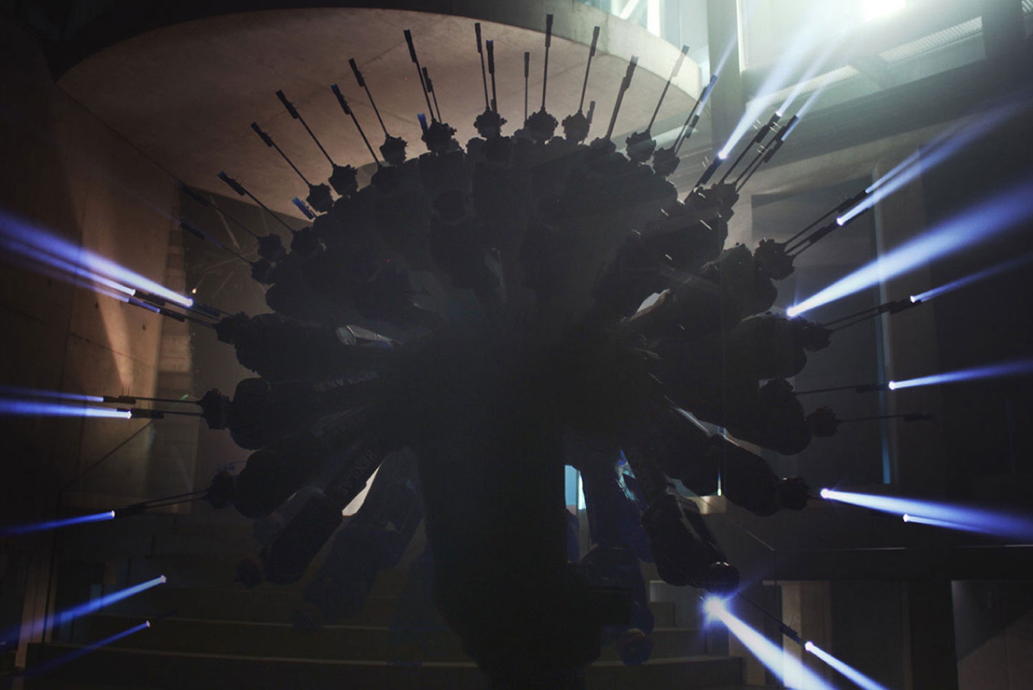 Das Institut für exparch.Hochbau / REX|LAB untersucht die Potentiale dynamischer Räume mit industriellen Robotern, die im Rahmen einer Installation in einen Dialog mit der Architektur des Steinhauses treten.