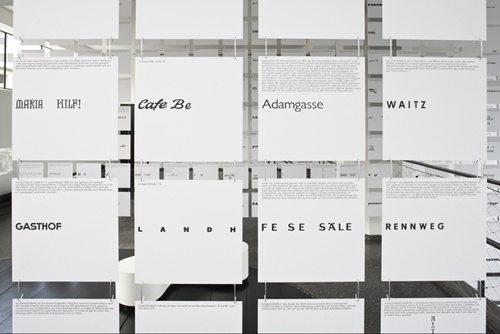Der Architekt, Grafiker und Typograf Andreas Uebele recherchierte dazu die Schriftkultur im öffentlichen Raum Innsbrucks, fotografierte die an Bauten vorgefundenen Logos, Geschäftstafeln, Hinweisschilder und Beschriftungen aller Art und destillierte daraus ein "alphabet innsbruck", das – ergänzt durch kurze augenzwinkernde Texte zur Typografie von Georg Salden sowie Stadt- und Hausgeschichten von Gretl Köfler– im aut als raumübergreifende Installation präsentiert wird.