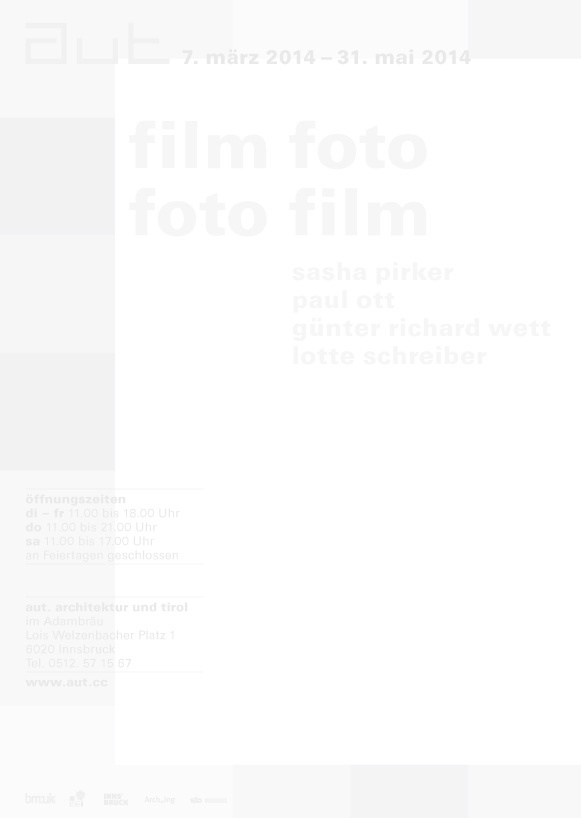 ausstellungMit Lotte Schreiber, Sasha Pirker, Paul Ott und Günter Richard Wett wurden zwei Filmemacherinnen und zwei Fotografen eingeladen, gemeinsam eine Ausstellung für die Räume des aut zu entwickeln, die sich dem Thema der Wahrnehmung widmet. Alle vier beschäftigen sich in ihrer Arbeit intensiv mit Architektur, Stadt, Landschaft und Raum.