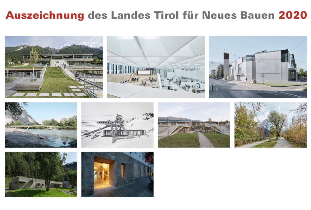 Aus den 75 Projekten, die zur „Auszeichnung des Landes Tirol für Neues Bauen 2020“ eingereicht wurden, hat die Jury – Anne-Julchen Bernhardt (RWTH Aachen), Peter Haimerl (Architekt, Stadtplaner, München), Marta Schreieck (Henke Schreieck Architekten, Wien – eine engere Auswahl an Bauwerken besichtigt und sich für 18 Nominierungen entschieden. Schlussendlich wurden drei Auszeichnungen und sechs Anerkennungen für Bauten vergeben, die dem Kriterium einer besonders vorbildlichen Auseinandersetzung mit den architektonischen Herausforderungen unserer Zeit sowohl in ästhetischer wie auch in innovatorischer Hinsicht entsprechen. Außerdem hat die Jury in diesem Jahr vier lobende Erwähnungen ausgesprochen.