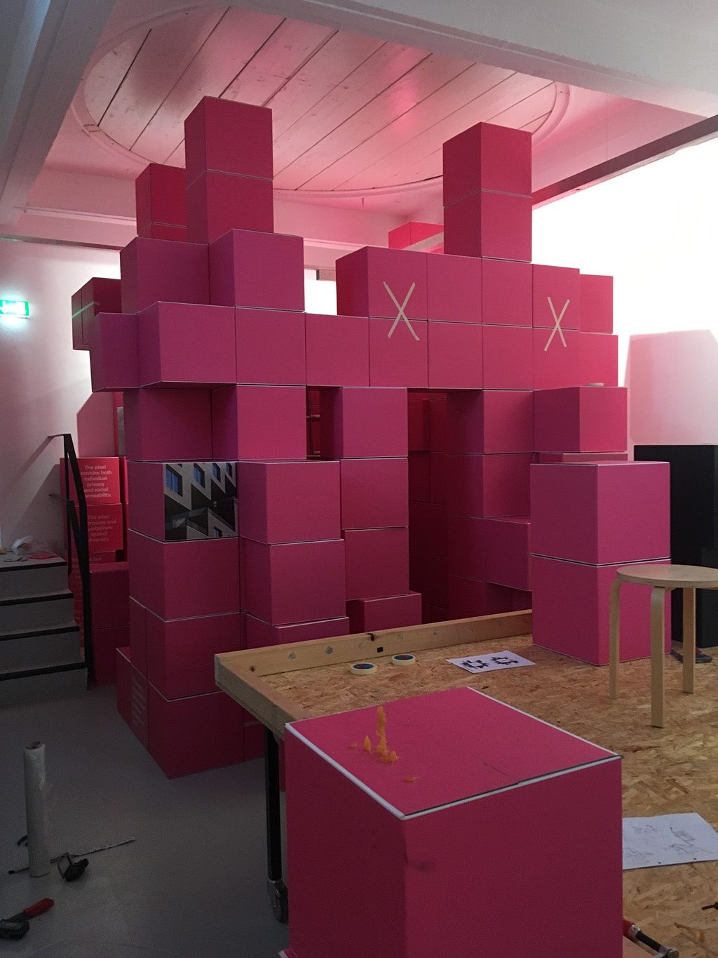 Die komplexen Aufbauarbeiten haben Anfang Juni begonnen – am 5. Juli findet die Eröffnung von "Architecture Speaks: The Language of MVRDV" statt.