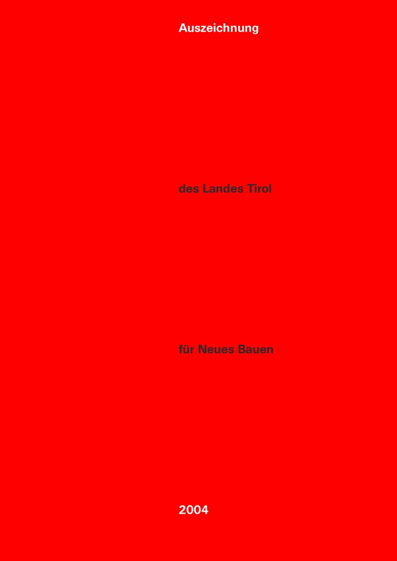 Seit 1996 zeichnet die Kulturabteilung im Amt der Tiroler Landesregierung gemeinsam mit der Kammer der Architekten und Ingenieurkonsulenten für Tirol und Vorarlberg – Sektion Architekten, der ZV – Zentralvereinigung der Architekten Österreichs – Landesverband Tirol und aut. architektur und tirol alle zwei Jahre vorbildliche Bauten in Tirol aus. Zur „Auszeichnung des Landes Tirol für Neues Bauen 2004“ konnten in Tirol ausgeführte Bauten eingereicht werden, die von ArchitektInnen bzw. IngenieurInnen geplant wurden und zwischen 2001 und 2004 fertiggestellt wurden.