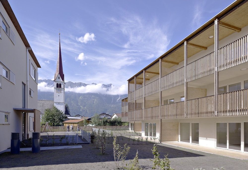 Die für die IIG errichtete Wohnanlage befindet sich mitten im kleinteiligen und ländlich geprägten Dorfkern von Amras, zwischen Widum, der 2007 von riccione Architekten erweiterten Volksschule und dem von Bauernhöfen geprägten historischen Straßenraum der Geyrstraße. Den in dieser Straße liegenden, ehemaligen Bauernhof „Oberer Gratl“ in ein Vereinsheim umzugestalten war ebenfalls Bestandteil des Architekturwettbewerbs, den Thomas Giner, Erich Wucherer und Andreas Pfeifer mit ihrem Projekt für sich entscheiden konnten.