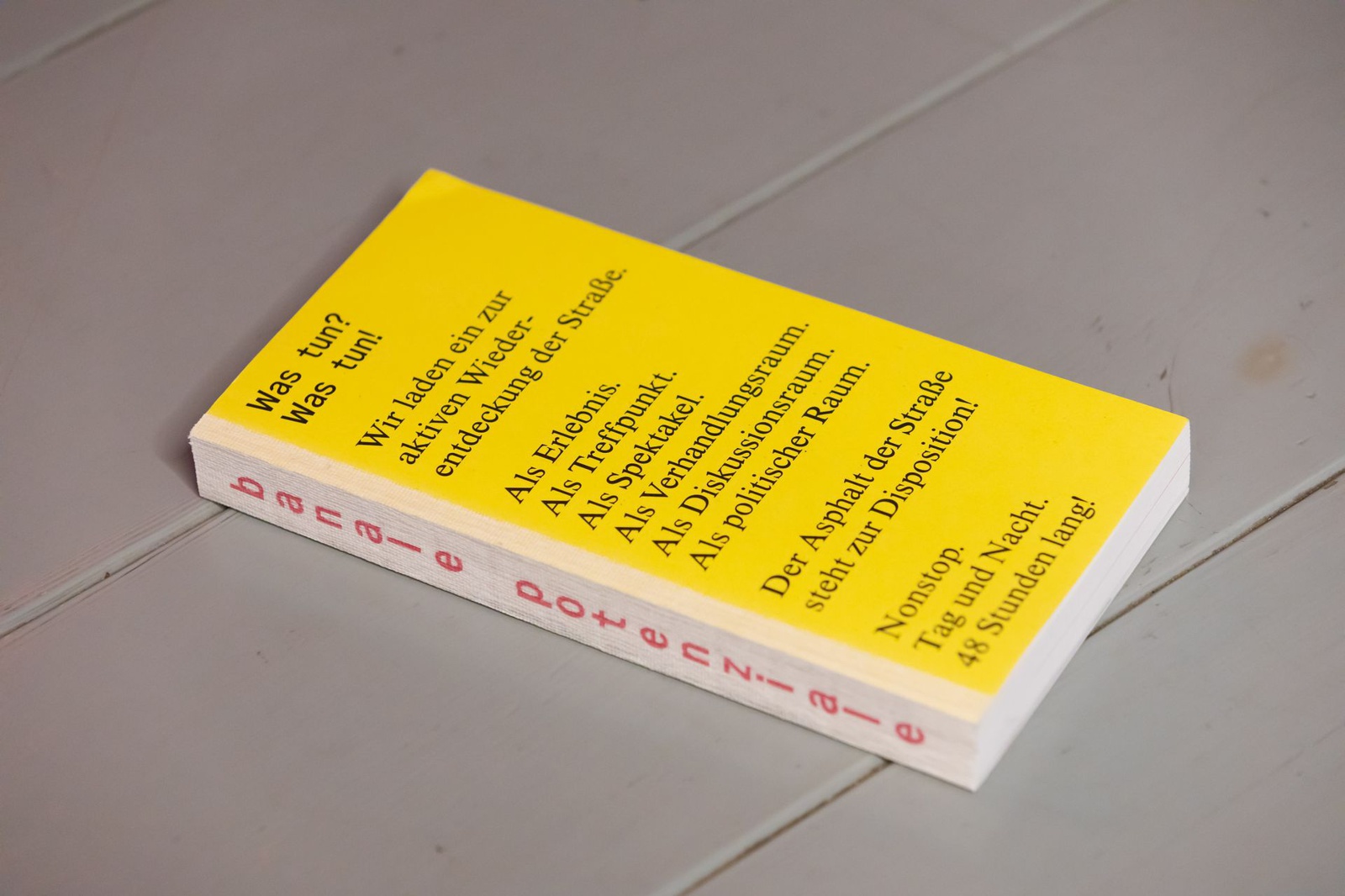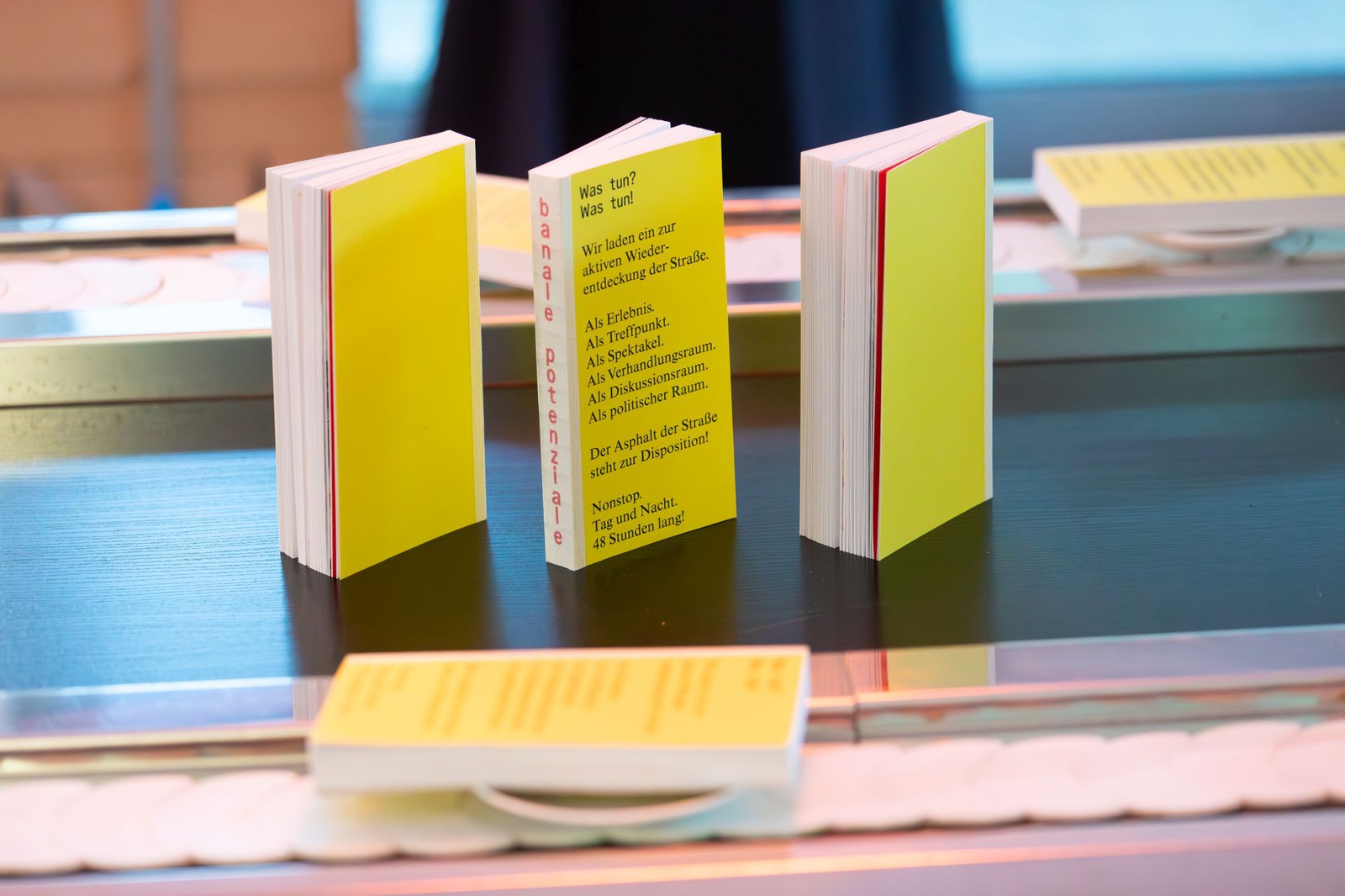 BuchpräsentationZur banale potenziale erscheint eine Publikation, die zum einen eine Retrospektive der 48-stündigen Auseinandersetzung mit dem öffentlichen Raum bietet und zum anderen zentrale Themen der Ausstellungen und Interventionen aufgreift und weiterführt. Sie versammelt Texte sowie fotografische und künstlerische Arbeiten, die sich aus unterschiedlichen Blickwinkeln den behandelten Fragestellungen annähern. Entstanden ist ein Reader, der als Orientierungshilfe, als Handlungsgrundlage und als Ausgangspunkt für interdisziplinäre Vernetzungen konzipiert ist. Die Publikation wird im Rahmen einer Book Launch Party mit anschließendem Fest präsentiert – eingebettet in die Ausstellung banale potenziale – Labor zur Erforschung der Straße im HDA.