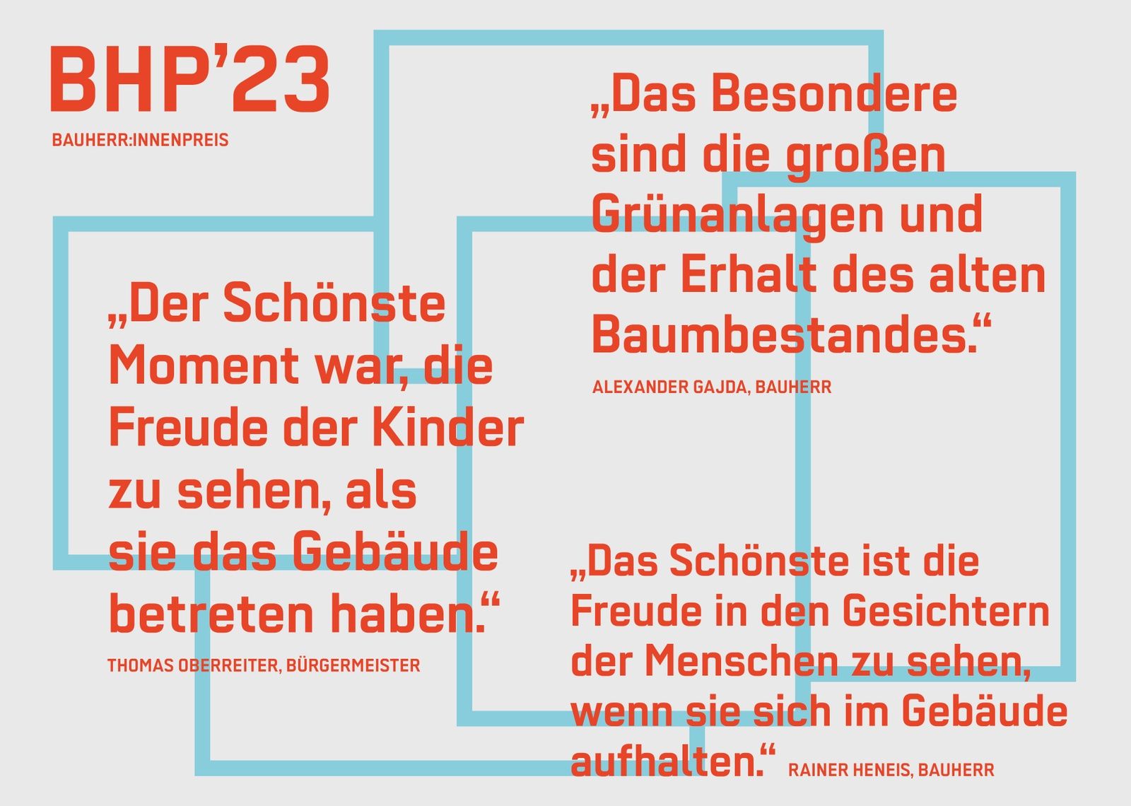 Die Zentralvereinigung der Architekt:innen bietet jährlich einen Einblick in das architektonische Schaffen in Österreich. Der Bauherr:innenpreis prämiert die Suche nach Qualitäten in Architektur, Freiraumgestaltung und bei städtebaulichen Lösungen. Er zeigt die Einflüsse einer sich verändernden Welt und die Reaktionen darauf. Was sichtbar wird: das besondere Engagement, der Mut und die Kreativität der Bauherr:innen, die diese Bauten in Auftrag gegeben haben. Damit haben sie einen unverzichtbaren Beitrag zur Baukultur in diesem Land geleistet. 2023 wurden insgesamt 110 Projekte eingereicht. Die Ausstellung zeigt alle 25 nominierten und preisgekrönten Projekte des österreichischen Bauherr:innenpreises 2023 und verdeutlicht, dass gutes Bauen einen Mehrwert für die unterschiedlichsten Aufgabenstellungen leisten kann.