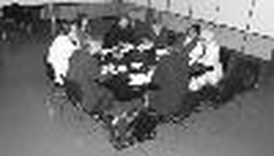 Gerhard Buresch, Wolfgang Feyferlik, Ernst Giselbrecht, Klaus Kada, Günter Koberg, Petra Maier, Harald Saiko und Dietger Wissounig im Gespräch mit Christian Kühn und Ute Woltron, Juni 2001.