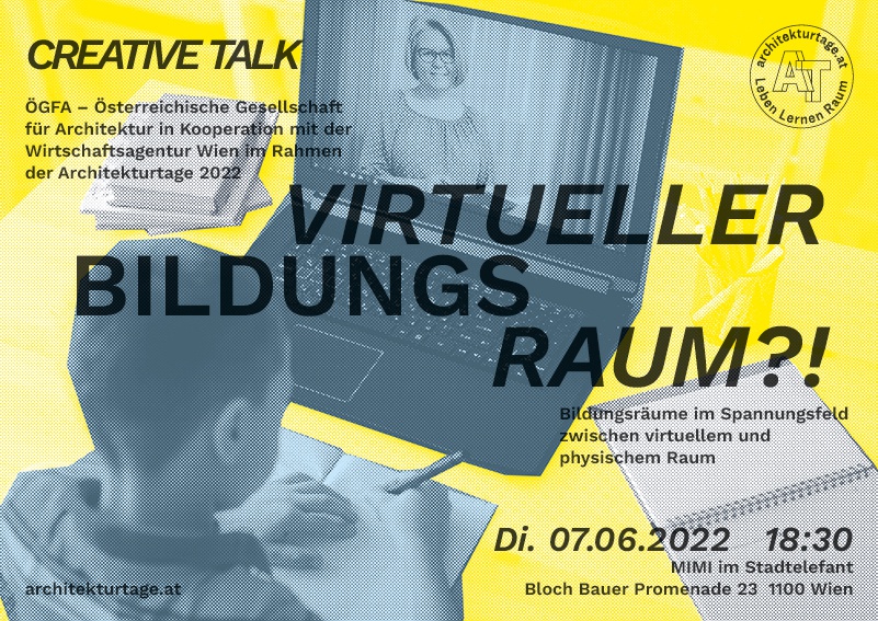 Dieser CREATIVE TALK, im Rahmen der Architekturtage 2022, widmet sich dem spannenden Thema des öffentlichen Bildungsraums im Spannungsfeld zwischen virtuellem und physischem Raum. Dabei werden die Potenziale, Synergien sowie die zukünftigen Schnittstellen oder Verbindungsmöglichkeiten dieser beiden räumlichen Entitäten im Fokus von Kultur und Technologie vorgestellt und diskutiert.