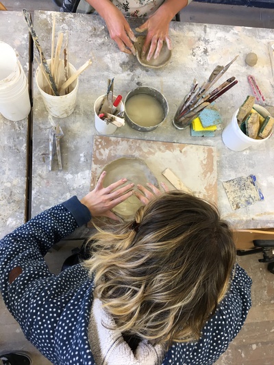 Bei einem „Vor Ort“-Gespräch führen Barbara Poberschnigg und Iris Reiter durch das neue Schulhaus, dessen äußeres und inneres Erscheinungsbild durch die Holzmassivbauweise geprägt ist.